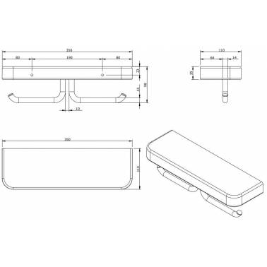 35 cm Regal mit Handtuchhalter und Toilettenpapierhalter aus Porzellan und verchromtem Messing, Marke Vintage Unisan