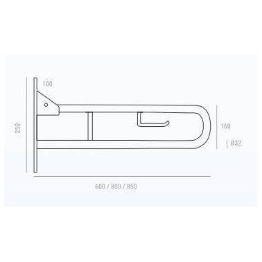 Barra abatible en acero inox con un elegante acabado satinado. Sin portarrollos, es una solución funcional de 800mm de longitud diseñada para ofrecer accesibilidad en cualquier espacio de baño.