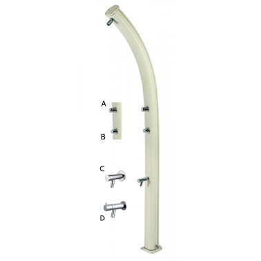 Columna de ducha y lavapiés en aluminio con 1 rociador de mando manual. Diseñada para un uso eficiente en exteriores, proporciona una experiencia de ducha cómoda y control manual del flujo de agua.