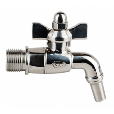 Válvula de esfera de acero inoxidable diseñada específicamente para bodegas. Cuenta con una clasificación PN 16 y un paso redondo, garantizando un flujo eficiente. Fabricada en acero inoxidable AISI 316, ofrece una alta resistencia a la corrosión. Los asientos son de PTFE, asegurando durabilidad y un funcionamiento suave. La entrada es una rosca gas (BSP) macho conforme a ISO 228/1. Soporta una temperatura máxima de 110ºC y se acciona mediante una palomilla de acero inoxidable. Dimensiones: A:43 mm, L:106 mm, M:63 mm. Peso: 331 g.