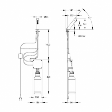 Jabonera electrónica repisa. Jabonera con dispensador electrónico montada en una repisa, ideal para optimizar el espacio en baños accesibles. Facilita el acceso al jabón de manera higiénica y sencilla. Fabricada en materiales resistentes.