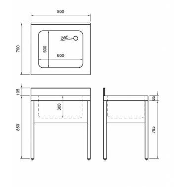 Industriespüle aus Edelstahl mit Rahmen und einer Schüssel 800x700 Nofer