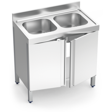 Doppelwaschbecken mit Falttüren aus Edelstahl 1200x600x850 mm