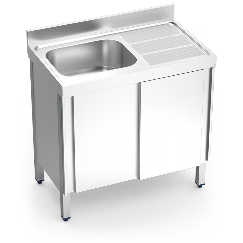 Spüle mit rechtem Abtropffläche aus Edelstahl mit Schiebetüren 1200x700x850 mm