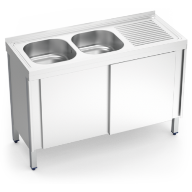 Doppelwaschbecken und rechter Abtropffläche mit Schiebetüren 1200x500x850 mm Fricosmos
