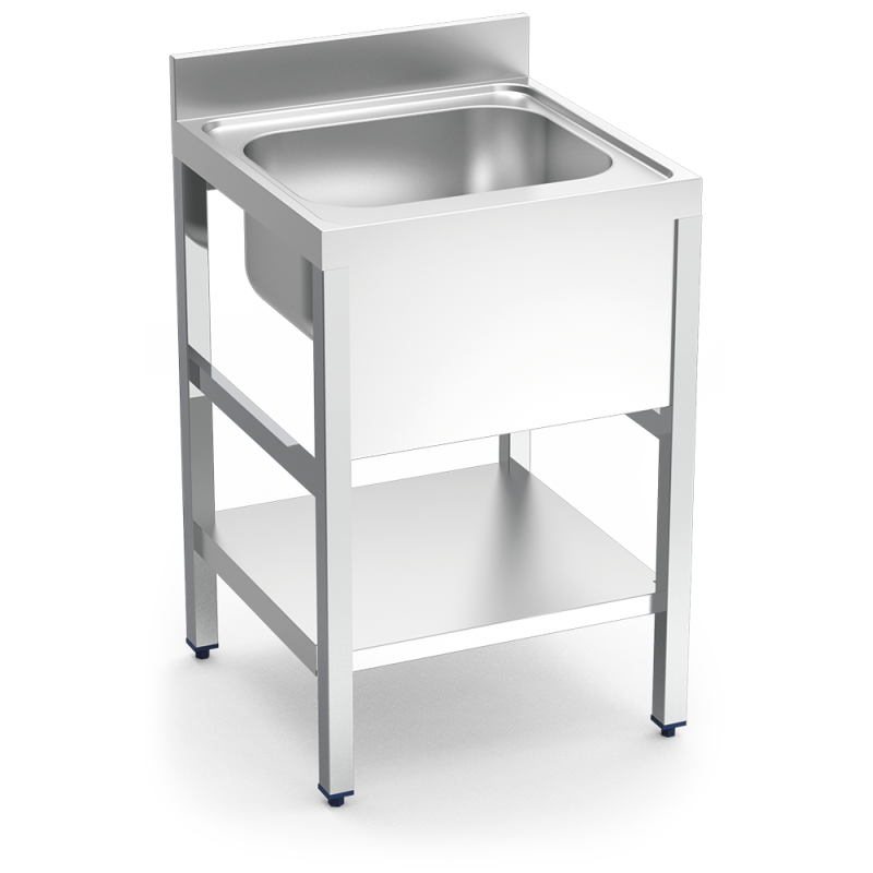 Spüle mit Stütze und Regal aus Edelstahl 800x700x850 mm