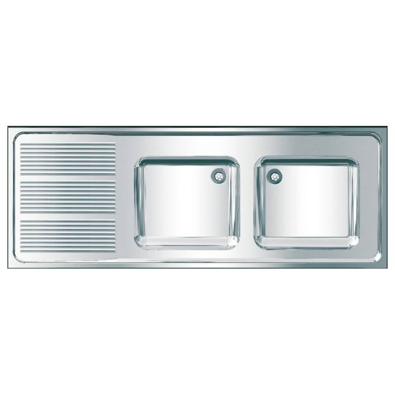 Industrielle Spüle mit zwei Schalen und Abtropffläche links 1600 mm MAXIMA-Modell der Marke Franke