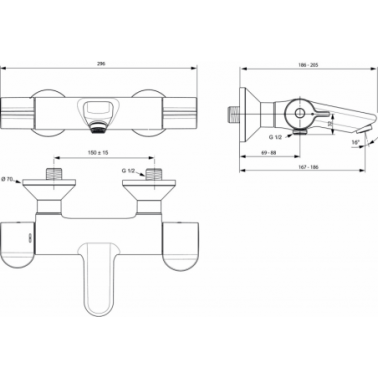 Mezclador termostático Ceraplus Safe para baño/ducha exterior con conectores on/off marca Ideal Standard