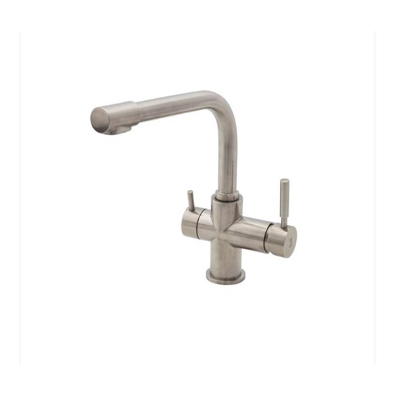 Die Osmo-Sammlung besteht aus einer Reihe von Osmosehähnen, deren Besonderheit in ihrem Auslauf liegt, der mit zwei unabhängigen Wasserauslässen versehen ist: einem für das Netzwerk und einem für das gefilterte Wasser, sodass sie auf unterschiedliche Weise fließen. Eine gute Lösung für neue Osmoseanlagen, bei denen die Wasserquelle mit einem einzigen Wasserhahn gelöst und auf zusätzliche Rohre verzichtet wird.