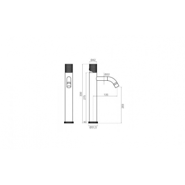 Grifo de lavabo alto Milos, diseñado para lavabos sobre encimera y configuraciones modernas de baño. Su imponente altura de 330 mm y su diámetro de 52 mm lo convierten en una pieza llamativa que combina diseño y funcionalidad. Acabado en negro mate, aporta un estilo vanguardista y elegante, ideal para espacios contemporáneos. Equipado con un sistema monomando que permite un control preciso del caudal y la temperatura del agua, garantizando comodidad y eficiencia en el uso diario. Fabricado con materiales resistentes a la corrosión y de fácil mantenimiento, es la elección perfecta para baños de lujo en viviendas, hoteles y espacios comerciales de alto nivel.