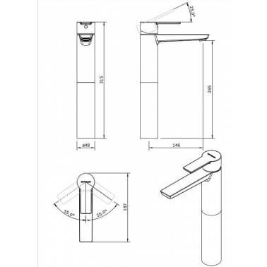 Einhebel-Waschtisch mit hohem Auslauf ohne Ventil Modell Master 40 Unisan
