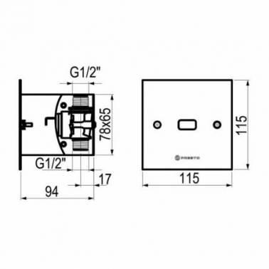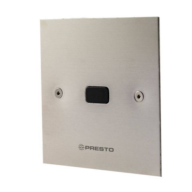 Grifo elect para urinario Domo Sensia UE cuadrado transformador cromo marca Presto. Grifo elect Sensia con célula de detección por sensor para urinario, fijación mural empotrada.