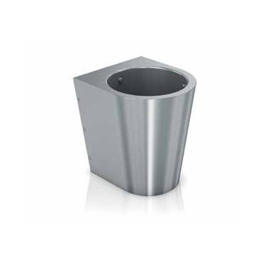 Anti-Vandalismus-Toilette aus satiniertem Edelstahl 304 mit Wandauslass zur Verwendung mit einem Flushometer oder einer versenkten Zisterne. Abmessungen: 400 x 353 x 600 mm.
