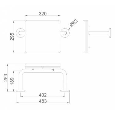 Gepolsterte Rückenlehne für Wandmontage Nofer. Hergestellt aus schwarzem Polyurethan und der Wandhalterung aus Edelstahl AISI 304. Entwickelt für die Installation in Badezimmern, die für Personen mit eingeschränkter Mobilität geeignet sind
