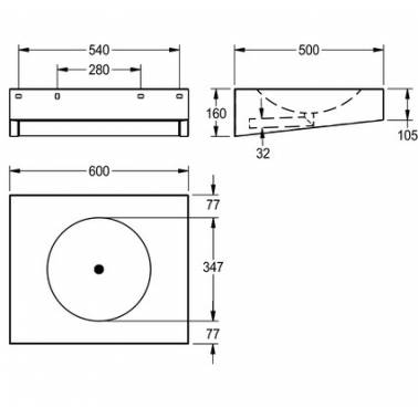 Waschbecken für Behinderte aus satiniertem Edelstahl ohne Ausguss, Modell ANIMA, Marke Franke. Das Material ist 1,2 mm dick. Die Schale hat eine runde Form von 350 mm Durchmesser und ist ohne Fugen geschweißt. Das rechteckige Becken mit einem 75-mm-Hahnregal ohne Überlauf und einem Ablassventil, das ohne Fugen mit einem Rohr mit 32 mm Durchmesser verschweißt ist. Der Abfluss hat es in der Mitte, die Wandhalterungen sind zuvor geschweißt, um einen Siphon unter verputzt zu montieren. Dieses Waschbecken entspricht der Norm EN 31 für Baugruppen mit leichtem Zugang für Menschen mit Behinderungen. Inklusive Schrauben aus Edelstahl und Stopfen, ohne Siphon. Die Breite des Beckens beträgt 600mm