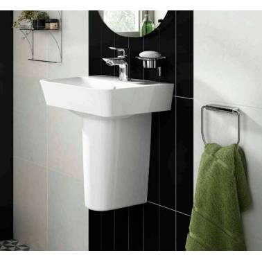 Connect Air Ideal Standard 50 Modellwaschbecken. Die Connect Air Waschbecken-Kollektion wurde im Stil der 60er Jahre mit geraden Linien und zeitlosen Designs entworfen, die die Entwicklung des Designs in Richtung Perfektion und Eleganz symbolisieren. Steinzeugwaschbecken mit zentralem Loch für den Wasserhahn und sichtbarem Überlauf. Das Wandbefestigungsset ist nicht im Lieferumfang enthalten (Ref .: J117767).