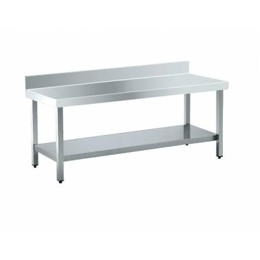 Niedriger industrieller Wandtisch mit Regal und 700 mm Brustpanzer aus satiniertem Edelstahl AISI 304, Größe 1200 x 600 mm Nofer. Erhältlich mit 600mm oder 700mm Rahmen. Verschiedene Größen 800, 1000, 1200, 1400 und 1600 mm. Hergestellt aus einem haltbaren und korrosionsbeständigen Material. Geeignet für die Installation an Orten mit hoher Nutzungshäufigkeit oder in professionellen Installationen. Die Installation ist einfach und bequem mit Inbusschrauben (Schlüssel im Lieferumfang enthalten).