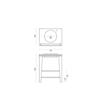 Mueble con lavabo Tarento 70, fabricado en Solid Surface, medidas 700 mm de ancho x 500 mm de profundidad x 859 mm de alto. Diseño elegante y resistente para baños modernos.