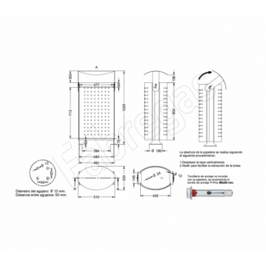 La papelera Arcoiris de Fábregas con sombrero abatible ha sido diseñada para combinar robustez, diseño urbano y funcionalidad en la recogida de residuos. Con unas dimensiones de 510 x 333 x 1025 mm y una capacidad de 80 litros, resulta idónea para espacios públicos de alto tránsito como calles, plazas, parques y áreas comunitarias. Está fabricada en acero zincado y acabada con pintura epoxi al horno en color martelé negro-plata, lo que le confiere una gran resistencia frente a la intemperie, actos vandálicos y condiciones ambientales adversas. El acabado martelé negro-plata, de carácter elegante y antimotin, refuerza su durabilidad y le otorga un aspecto distintivo y moderno. Incluye un aro sujeta-bolsas que facilita la colocación y retirada de bolsas de forma sencilla y rápida. El sistema de anclaje recomendado es mediante tornillo M8x80 mm (no suministrado, se recomienda el modelo T-11-L). Una papelera robusta, segura y con diseño ergonómico que asegura un rendimiento excelente en entornos urbanos exigentes.