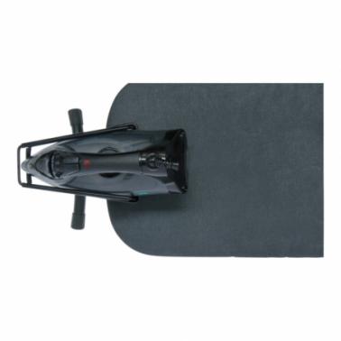 Tabla de planchar compacta con funda negra acolchada. Gira fácilmente y es perfecta para hoteles o apartamentos turísticos.