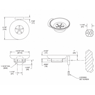 La jabonera de montaje en superficie de la marca ASI combina materiales de alta calidad y un diseño práctico. Fabricada en acero inoxidable tipo 304 con aleación 18-8, esta jabonera garantiza durabilidad y resistencia al óxido, incluso en ambientes húmedos. El plato de jabón, hecho de vidrio transparente moldeado en una sola pieza, incluye ribs integrados que mantienen el jabón en su lugar, evitando deslizamientos. La instalación es sencilla: se fija la placa de pared incluida con tornillos y, posteriormente, se desliza y asegura la jabonera con un tornillo oculto. Sus dimensiones son 4-15/16" de ancho x 4-7/8" de profundidad, proporcionando un espacio ideal para almacenar jabón sólido con estilo y funcionalidad.