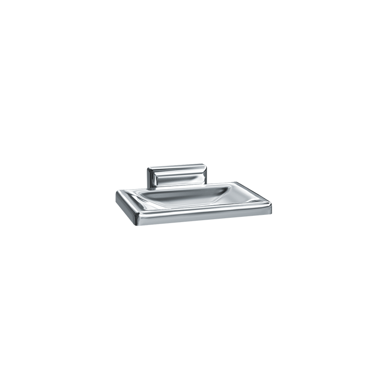 Jabonera en zamak cromado para montaje en superficie. Diseño sofisticado y resistente para organizar jabones con estilo.