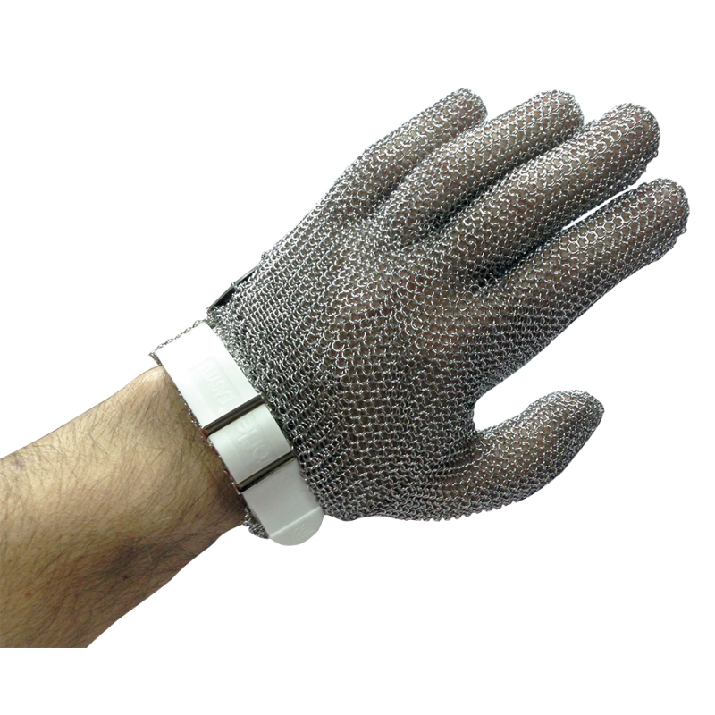 Beidhändig wirkender Edelstahl-Netzhandschuh mit Riemen am Handgelenk Größe XS