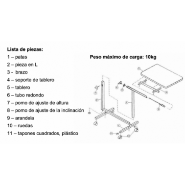 Tablero marrón con anclaje para mesa auxiliar marca Ayudas Dinámicas