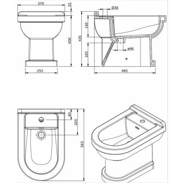 Monoblock-Bidet mit Befestigungssatz Vintage UNISAN-Modell