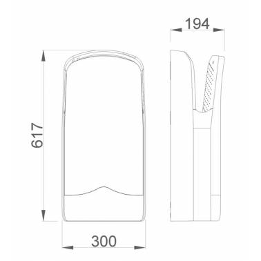 Elektronischer Händetrockner V300 Ion Shield mit Veltia NOFER blau. Handinduktion Händetrockner in verschiedenen Ausführungen in den Ausführungen Weiß, Grau, Champagner, Schwarz, Blau, Dunkelblau, Rot, Kirsche und Burgund erhältlich. Es hat eine Leistung von 1760 W und eine Drehzahl von 30.000 U / min. Die Spannung beträgt 220-230-240 V, die Frequenz beträgt 50 - 60 Hz und der Stromverbrauch beträgt 8A. Sie wird automatisch vom Sensor aktiviert, wenn der Kunde seine Hände in den Trockenbereich legt. Das Modell V300 verfügt über ein Spritzschutz-Trocknungssystem mit Hochgeschwindigkeitsluftströmen und 300 Löchern, das eine optimale und effiziente Trocknung bietet. Die Ion Shield-Technologie ist einer der revolutionärsten Fortschritte, da sie die Hygiene beim Händetrocknen verbessert und als Luftfilter und Luftreiniger fungiert. Trockner emittieren 20 Millionen negative Ionen pro cm3. Diese ziehen Schmutzpartikel an, die beim Anhaften aufgrund der Schwerkraft ausfallen und so die Luft von Bakterien, Milben und schlechten Gerüchen reinigen.