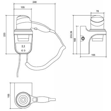 Haartrockner mit Stecker für Rasierer mit zwei Geschwindigkeiten und mit EIN / AUS-Schalter, Modell Hotelline NOFER . Aus weißem ABS. Es hat eine Leistung von 2200 W, eine Spannung von 220 - 240 V und eine Frequenz von 50 Hz - 60 Hz. Spiralkabel mit Pistolenhalterung und einer maximalen Länge von 1000 mm. Die Luftgeschwindigkeit beträgt 58 km / h, der Luftstrom 1300 l / min, der Schalldruck 62 dBA. Die Luftaustrittstemperatur bei 10 cm bei einer Umgebungstemperatur von 20 ° C beträgt 65 ° C. Seine Abmessungen sind 233 Höhe x 248 Breite x 155 Tiefe (mm)
