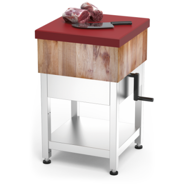 Tajo de corte profesional diseñado para la industria alimentaria, fabricado con materiales de alta calidad que garantizan resistencia, durabilidad e higiene. Su estructura está hecha en acero inoxidable AISI 304, proporcionando una superficie robusta, fácil de limpiar y altamente resistente a la corrosión. Incorpora un bloque de madera de abedul de 200 mm de espesor, ideal para absorber impactos y facilitar el corte de carnes y otros alimentos. Además, cuenta con una fibra de polietileno rojo de 50 mm de espesor, un material higiénico y seguro para el contacto con alimentos. Lo que distingue a este modelo es su sistema de elevación regulable, diseñado para mejorar la ergonomía del usuario y reducir riesgos laborales. Con este mecanismo, se puede ajustar la altura de la superficie de trabajo en 200 mm hacia arriba o hacia abajo, permitiendo una altura mínima de 805 mm y una máxima de 1005 mm. Esto garantiza una postura de trabajo cómoda y segura, evitando lesiones y fatiga muscular. Su base ha sido diseñada para adaptarse a suelos con desnivel, asegurando que la encimera se mantenga siempre horizontal. Además, incluye un cuchillero integrado, proporcionando un almacenamiento seguro y práctico para herramientas de corte. Es una solución ideal para carnicerías, supermercados, cocinas industriales y cualquier entorno donde se requiera una estación de corte resistente y funcional.