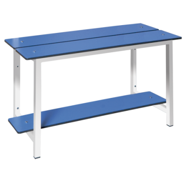 Bancos para vestuarios y cambiadores de gimnasios, piscinas y recintos deportivos. Con o sin respaldo y estructuras para percheros y estantes.