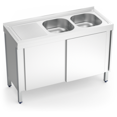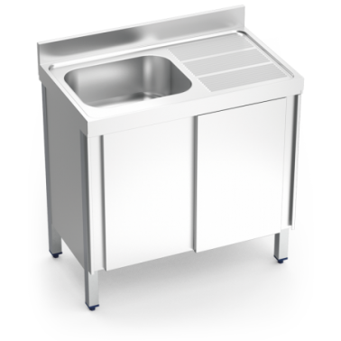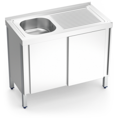 Encuentre en esta categoría Fregaderos profesionales con puertas correderas para ámbitos profesionales tales como cocinas profesionales o de entornos hoteleros. Fabricados en acero inoxidable de la mejor calidad para resistir al uso continuado, a la utilización de productos agresivos de limpieza y desinfección y a la corrosión del agua. Al tener pertas correderas otorga un espacio extra para almacenaje en la cocina y al abrirse de forma deslizante a los lados es posible colocarlo en lugares estrechos. Con las mismas posibilidades de combinar cubetas y escurreplatos: Una sola cubeta o seno normal o de alta capacidad, de dos o tres cubetas con un escurridor lateral a izquierda o derecha o de una, dos o tres cubetas con escurridores a ambos lados, para cubrir cualquier necesidad. Todo el conjunto se regula en altura mediante un mecanismos de rosca en las patas, para que no bascule y este recto horizontalmente.