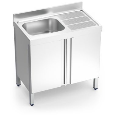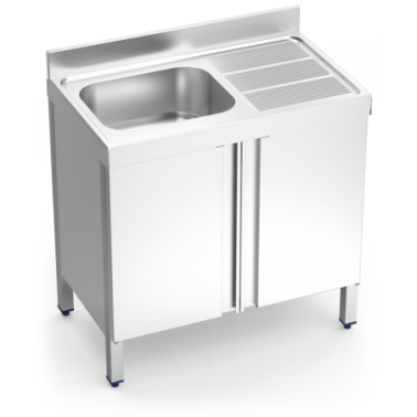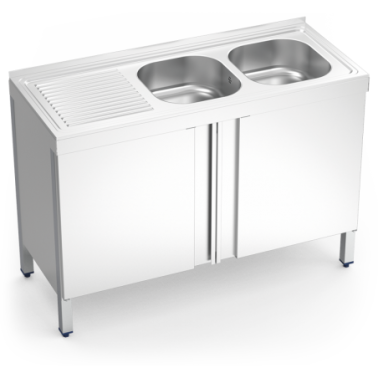 En esta categoria encontrará un extenso catálogo de fregaderos industriales fabricados de acero inoxidale con puertas abatibles para conseguir un espacioextra de almacenaje en la cocina. Para cocinas industriales o profesionales en establecimientos hosteleros o en la industria hotelera. Posibilidad de combinar una, dos, o tres cubetas con escurreplatos lateral a derecha o izquierda o escurridor a ábos lados. Fabricados en acero inoxidable de la mas alta calidad. lñas patas son regulables en altura para evitar que el conjunto cojeé y proporcional estabilidad.