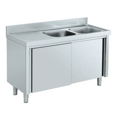En esta categoria encontrará un extenso catálogo de fregaderos industriales fabricados de acero inoxidale con puertas abatibles para conseguir un espacioextra de almacenaje en la cocina. Para cocinas industriales o profesionales en establecimientos hosteleros o en la industria hotelera. Posibilidad de combinar una, dos, o tres cubetas con escurreplatos lateral a derecha o izquierda o escurridor a ábos lados. Fabricados en acero inoxidable de la mas alta calidad. lñas patas son regulables en altura para evitar que el conjunto cojeé y proporcional estabilidad.
