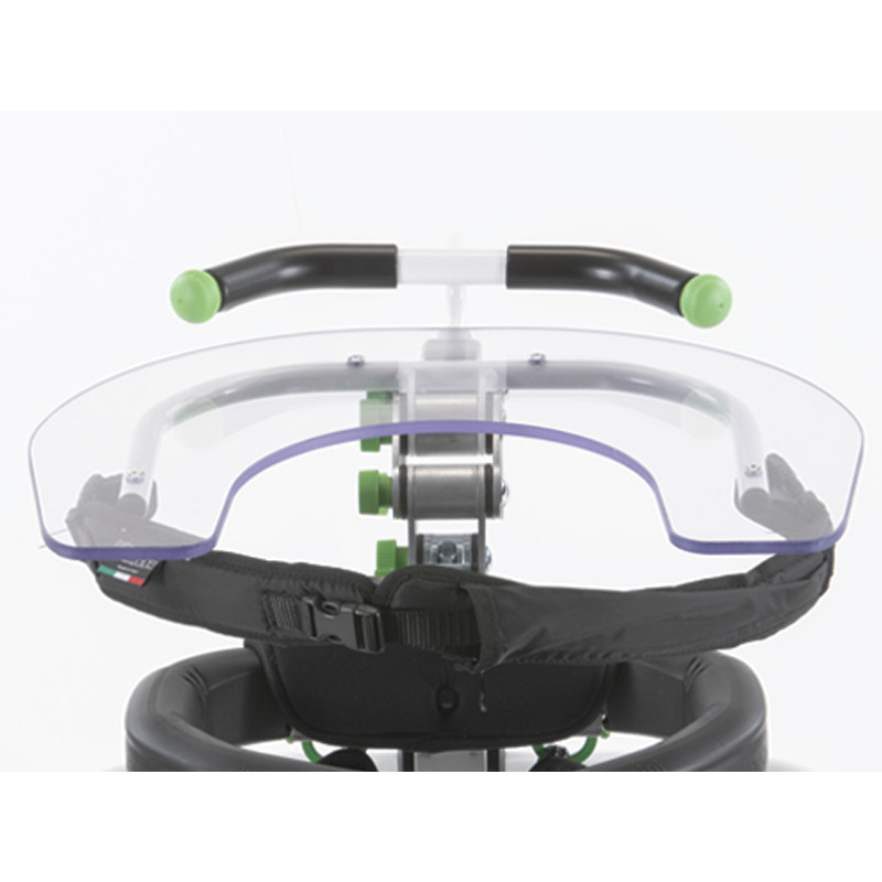 Cinturón de sujeción para anclar a la mesita del andador y rehabilitador Grillo PTM, talla mini. Fabricado para brindar seguridad adicional al usuario, evita desplazamientos involuntarios y mejora la estabilidad durante las actividades de rehabilitación.