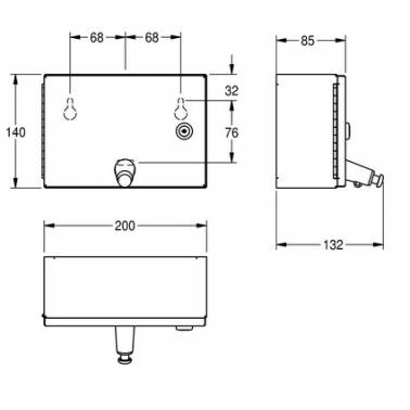 Dosificador de jabón horizontal 1L a pared en acero inoxidable acabado satinado modelo RODAN marca Franke KWC.