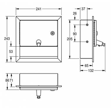 Dispensador de jabón empotrado horizontal 1L en acero inoxidable acabado satinado modelo RODAN marca Franke KWC