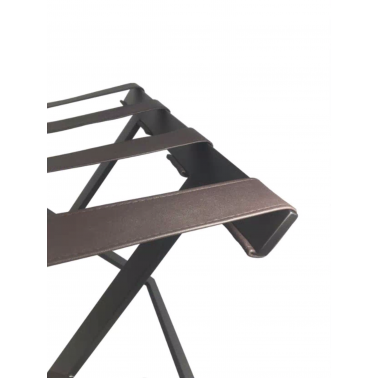 Reposa maletas fabricado en acero epoxi de color negro y cuero sintético marca JVD