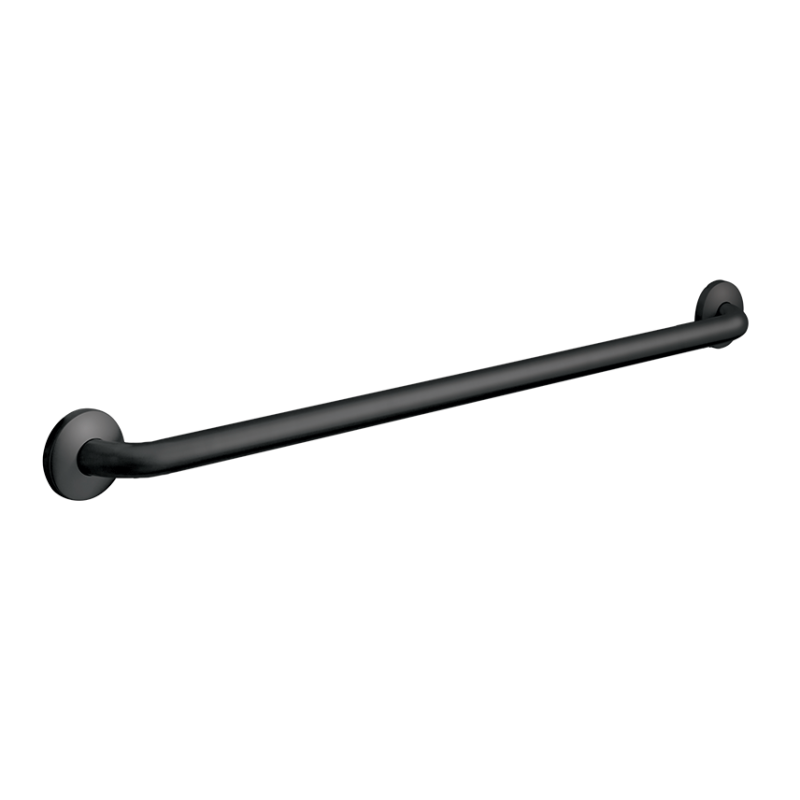 Barra de apoyo robusta de 48” con elegante recubrimiento negro mate. Ideal para brindar seguridad y estilo a cualquier espacio. Fabricada en acero inoxidable para mayor durabilidad y resistencia.
