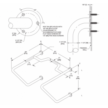 Barra de apoyo fabricada en acero inoxidable tipo 304 con acabado satinado, diseñada para proporcionar un soporte seguro en baños accesibles y espacios de asistencia. Su brida expuesta de 3" (76 mm) de diámetro y 1/8" (3 mm) de espesor garantiza una instalación firme y estable. La barra cuenta con un diámetro exterior de 1-1/4" (32 mm) y presenta un diseño liso, ideal para ofrecer un agarre cómodo y seguro. Los orificios de montaje están perforados y avellanados, permitiendo una fijación sencilla y resistente. Perfecta para entornos comerciales, hospitalarios y residenciales que requieren un alto nivel de accesibilidad y seguridad.