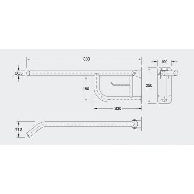 Asidero abatible derecho fabricado en acero inoxidable AISI 304 acabado brillante PMR Valadares. Disponible en acabado brillo y acabado satinado. Versión derecha o izquierda y también disponible con portarrollos.