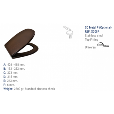 Tapa WC Invis 2 Woodline Verde Claro SC Metal 08P Marca Estoli: Tapa WC en madera de roble con bisagra de acero inoxidable y montaje superior universal. Incluye un cierre silencioso para evitar ruidos molestos. La tapa destaca por su resistencia extrema gracias a la tecnología de co-inyección de Estoli, que ofrece elegancia y durabilidad. Respetuosa con el medio ambiente. Todos los asientos tienen un núcleo de material 100% reciclado y son completamente reciclables. Limpieza total. La ausencia de aristas permite una limpieza eficiente. Diseños ergonómicos. El diseño ergonómico mejora la comodidad del usuario. Perfecta adaptación. Las bisagras regulables aseguran un ajuste perfecto en diferentes tipos de inodoros. Mantenimiento. Se recomienda limpiar con agua fría jabonosa y secar con un paño suave. No usar productos abrasivos, cloros, aromatizantes o ácidos concentrados, ya que pueden dañar el material. Si se usan estos productos en la porcelana, levantar el asiento hasta que el inodoro se haya aclarado y los vapores se hayan disipado.