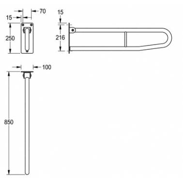 Asidero abatible a pared de 850mm fabricado en acero inoxidable acabado satinado marca Franke KWC.