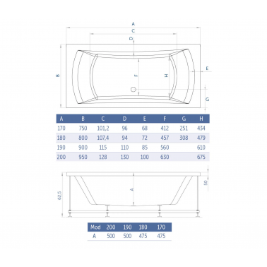 Bañera de hidromasaje rectangular Concerto Cristal 200 x 95 marca SFA Sanitrit