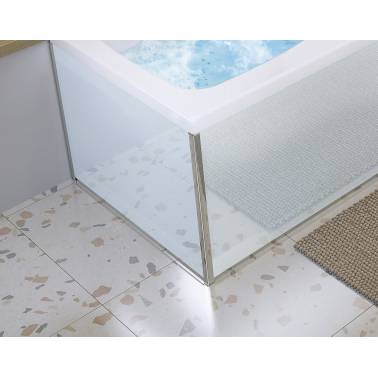 Todas nuestras bañeras se entregan con un cojín, un vaciador y chasis autoportante. Se pueden equipar con grifería y faldones con acabado acrílico, de cristal blanco o negro o madera clara o oscura.