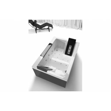 Bañera de 180x120 mm Twospace con sistema de hidromasaje, dos paneles frontales de 180 mm y un panel lateral de 120 mm marca Unisan.