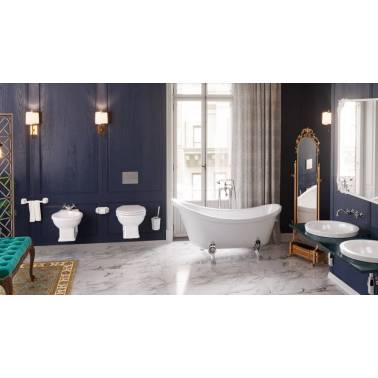 Bañera exenta modelo Classic marca Valadares. Bañera con patas fabricada en resina con carga mineral de color blanco. Se suministra con pies y sistema de desagüe cromados. En opción, los pies y el sistema de desagüe pueden ser en blanco o en cobre viejo. Debe indicar el color que desea en el recuadro de observaciones. Sus dimensiones son 175x80x72cm.