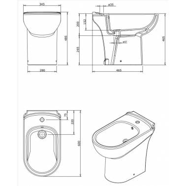 Bidé monobloc con juego de fijación especial para discapacitados PMR modelo Proget Confort marca Unisan